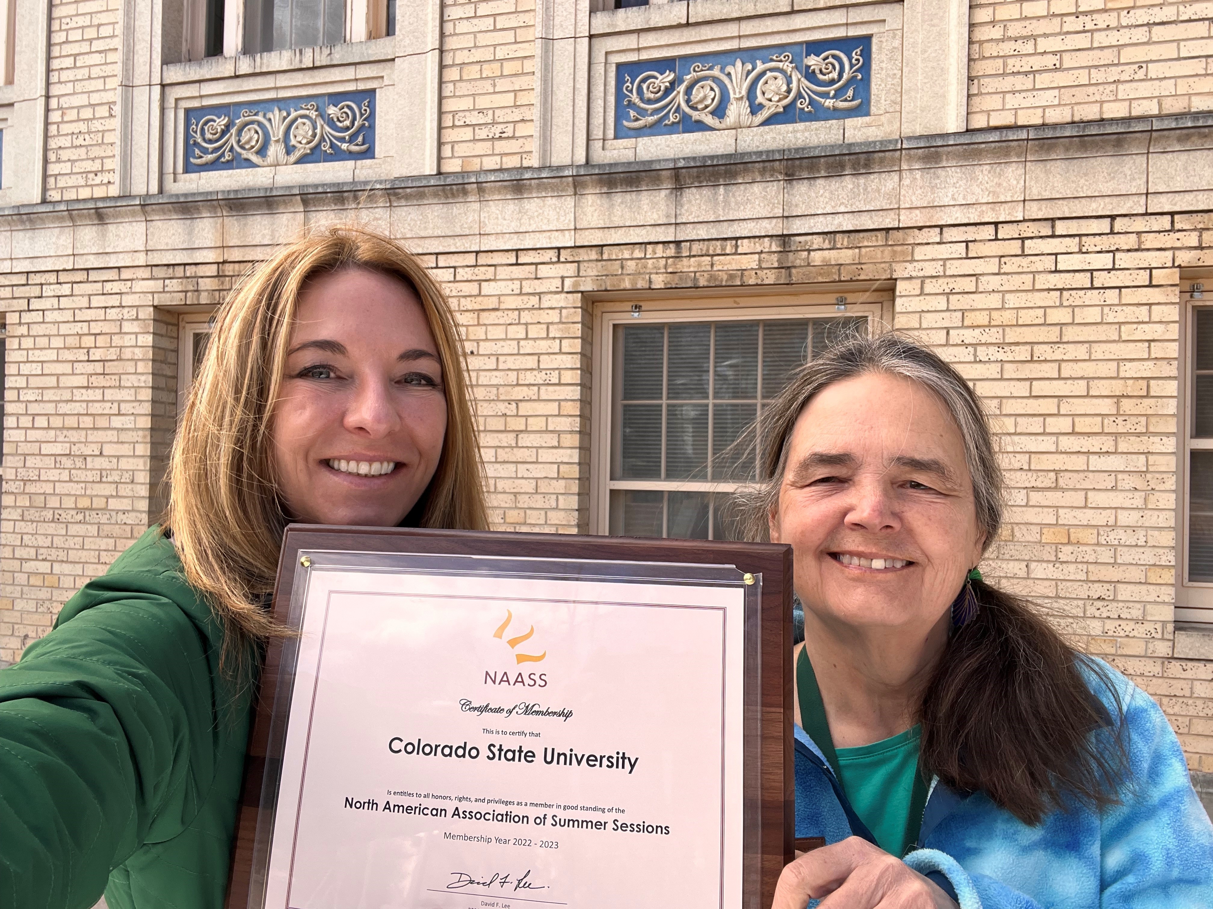 • Pictured below are Anne Van Arsdall and Ellen Audley from CSU Summer with their 2022-2023 membership certificate.