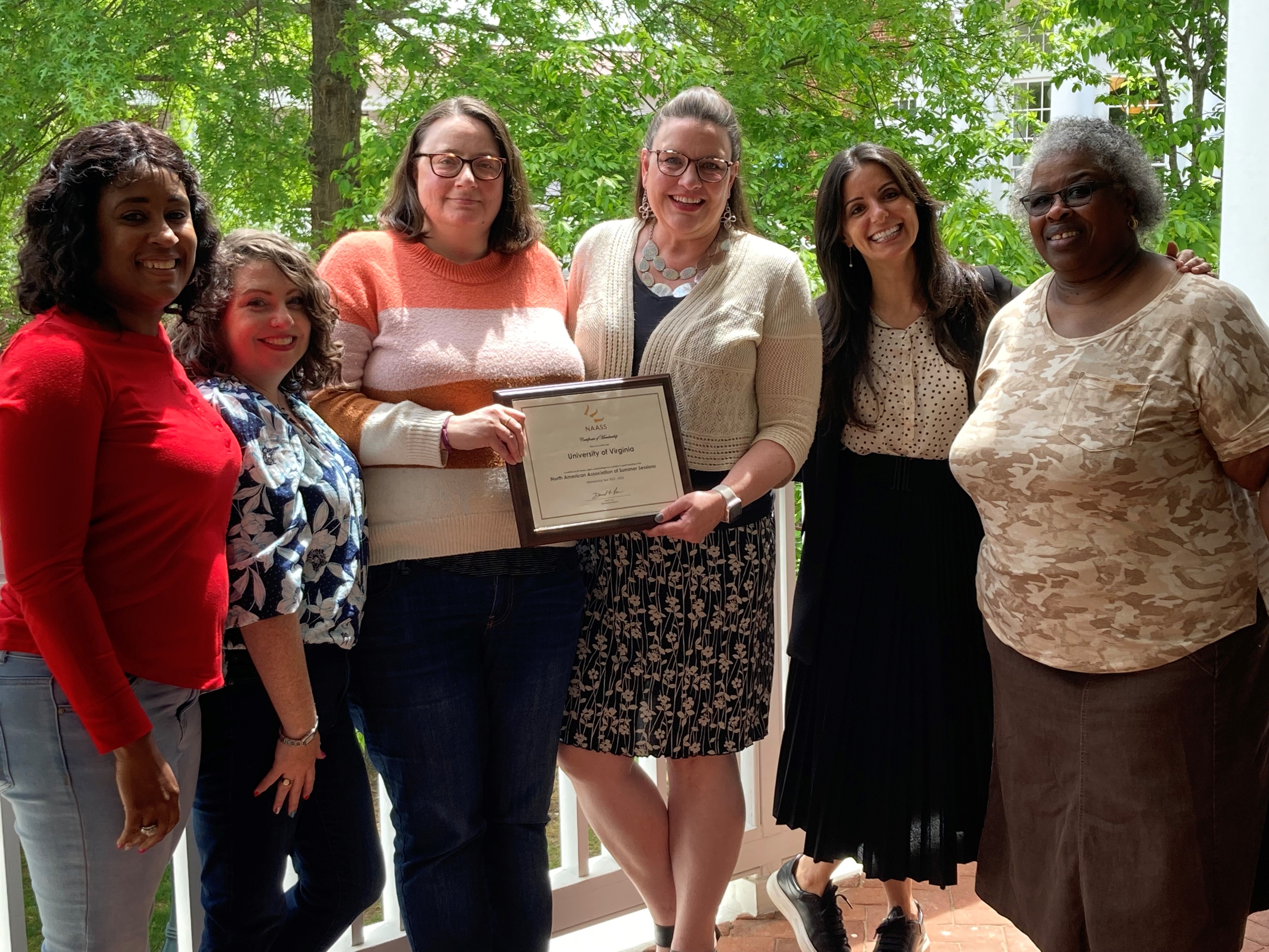 • Pictured below are - Katrina Hunter, Alana Speth, Tonya White, Rachel Nottingham Miller, Vera Abbate, and Sally Barbour from the University of Virginia with their 2022-2023 membership certificate.